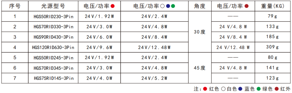 照射角度、外形尺寸、安装孔位、亮度、波长、色温。