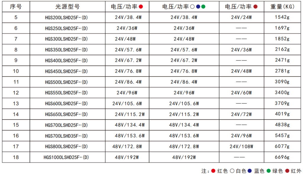 发光尺寸、光斑宽度、散热方式、安装方式、亮度、波长。
