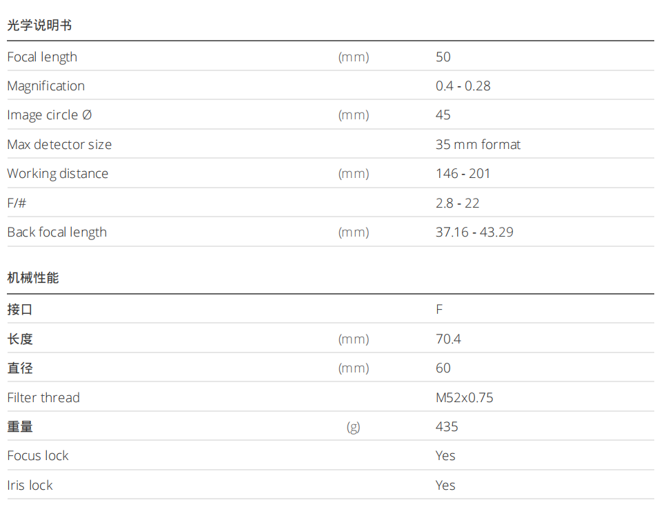 线扫相机,50mm焦距 F/2.8 ,F接口,佛能否做距离146-201mm