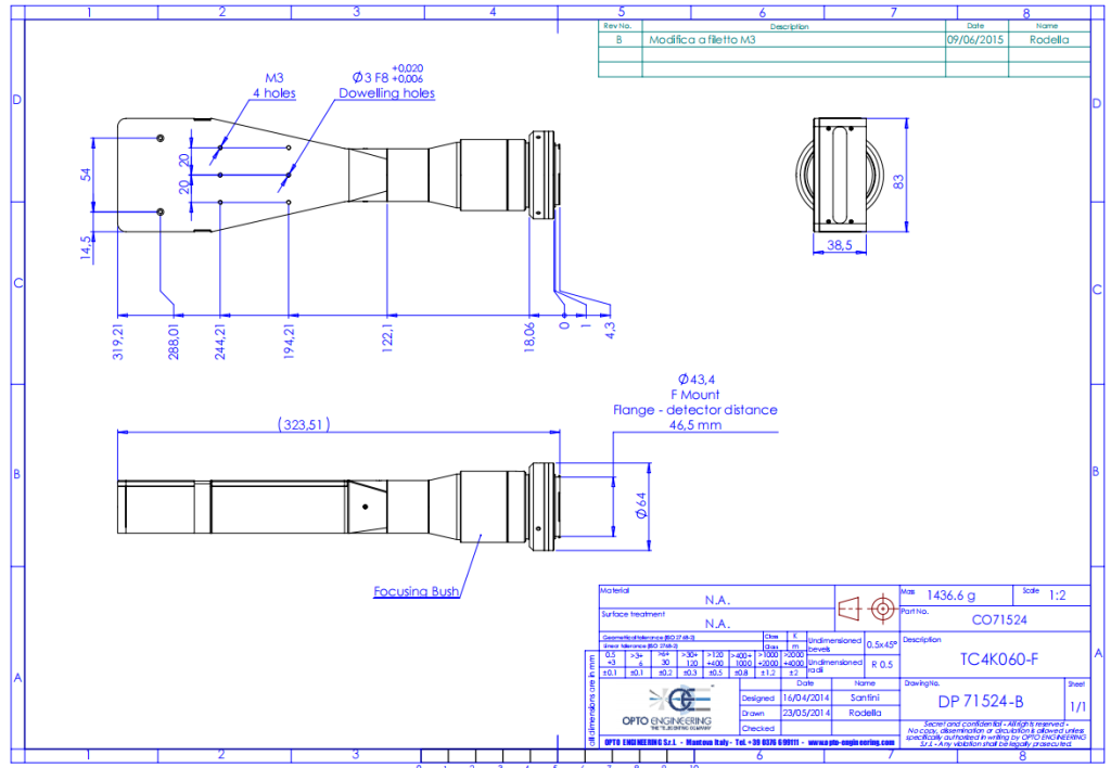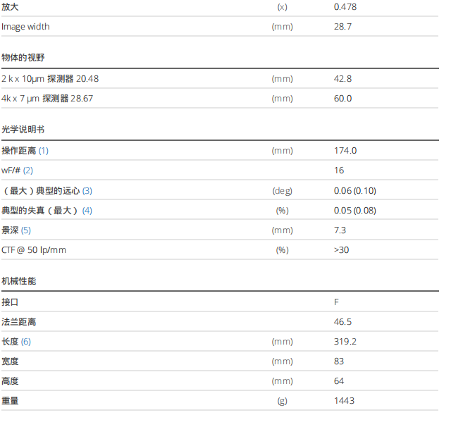 Telecentric lens for 4k linescan cameras, magnification 0.478x, F-mount