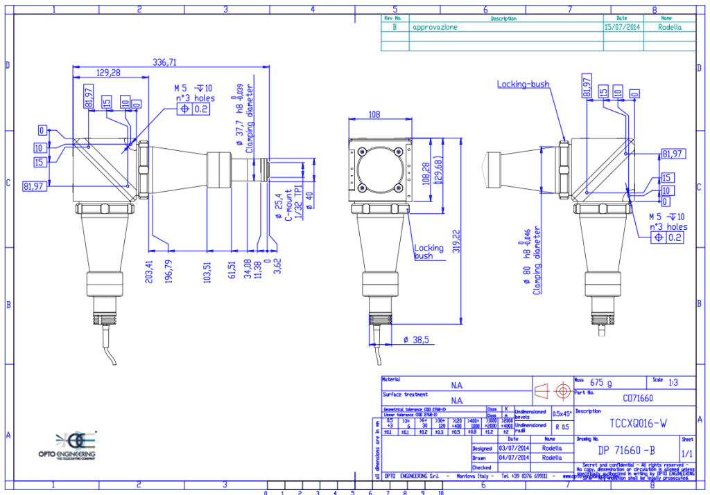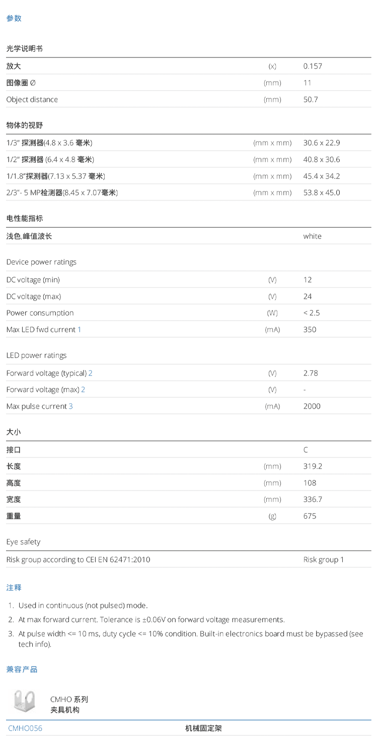 Telecentric assembly with coaxial illumination for 2/3″ detectors, magnification 0.16x, white