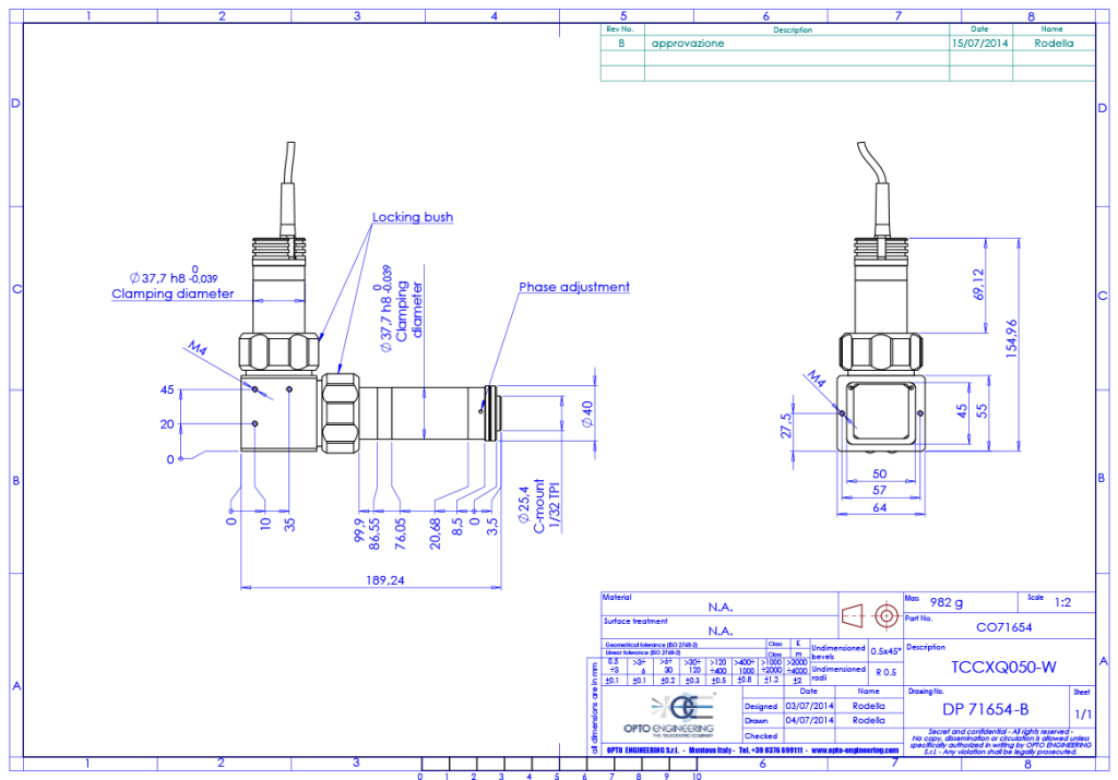 Telecentric assembly with coaxial illumination for 2/3″ detectors, magnification 0.50x, white