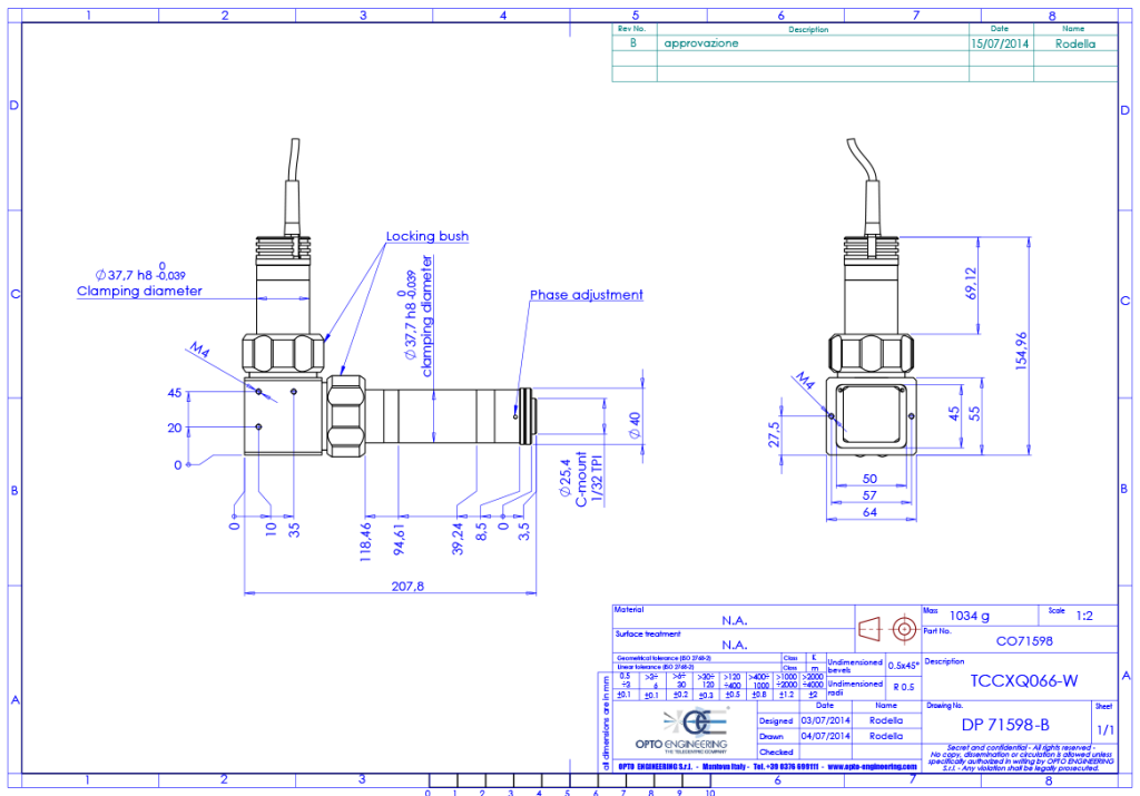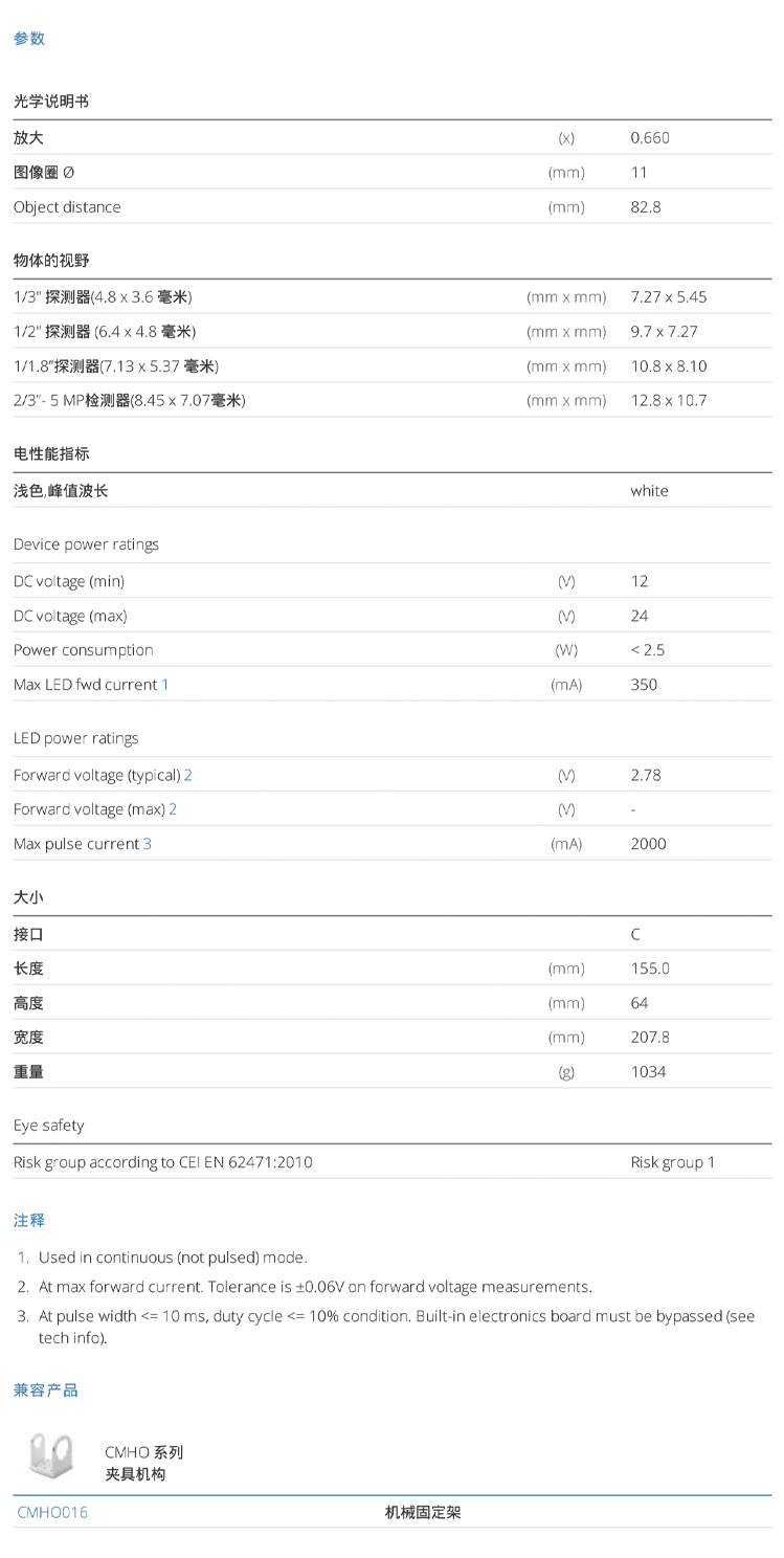 Telecentric assembly with coaxial illumination for 2/3″ detectors, magnification 0.66x, white