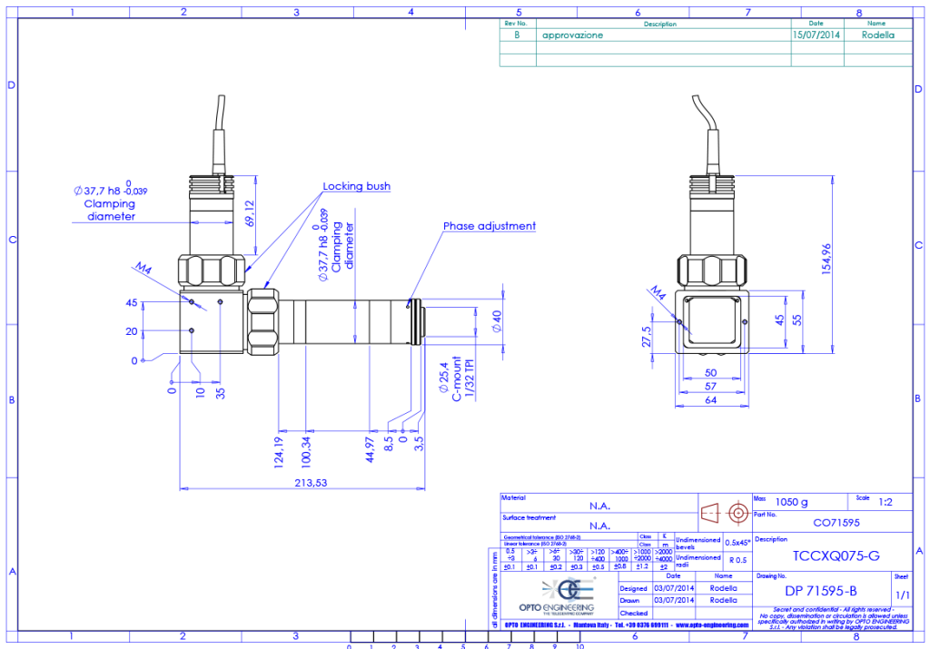 Telecentric assembly with coaxial illumination for 2/3″ detectors, magnification 0.75x, green