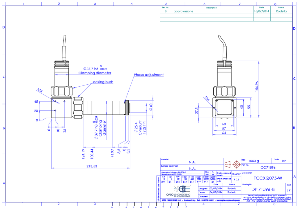 Telecentric assembly with coaxial illumination for 2/3″ detectors, magnification 0.75x, white
