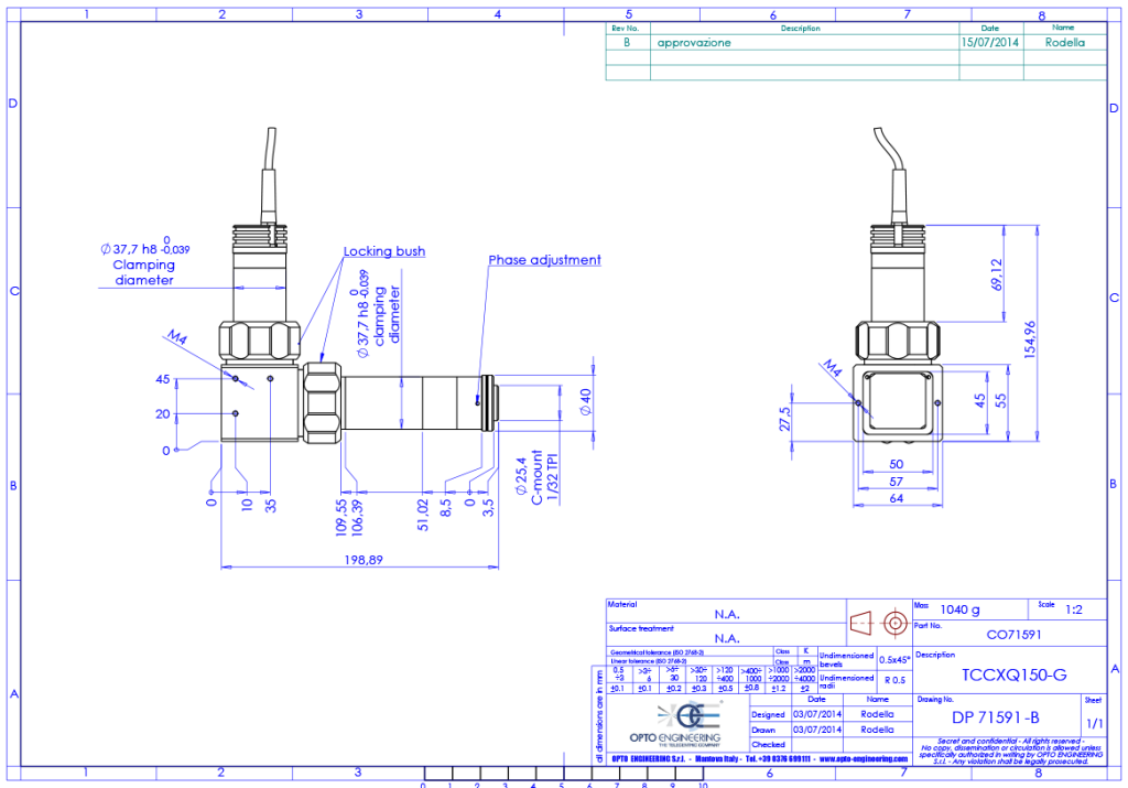 Telecentric assembly with coaxial illumination for 2/3″ detectors, magnification 1.50x, green