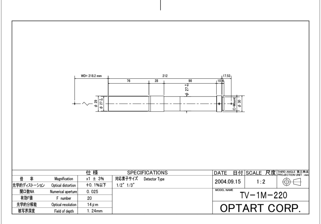 用于1/1.8”探测器的1X非常大工作距离的远心镜头