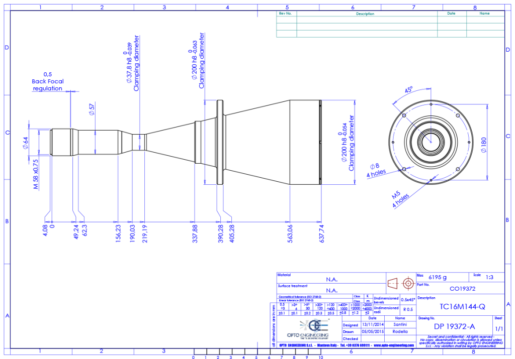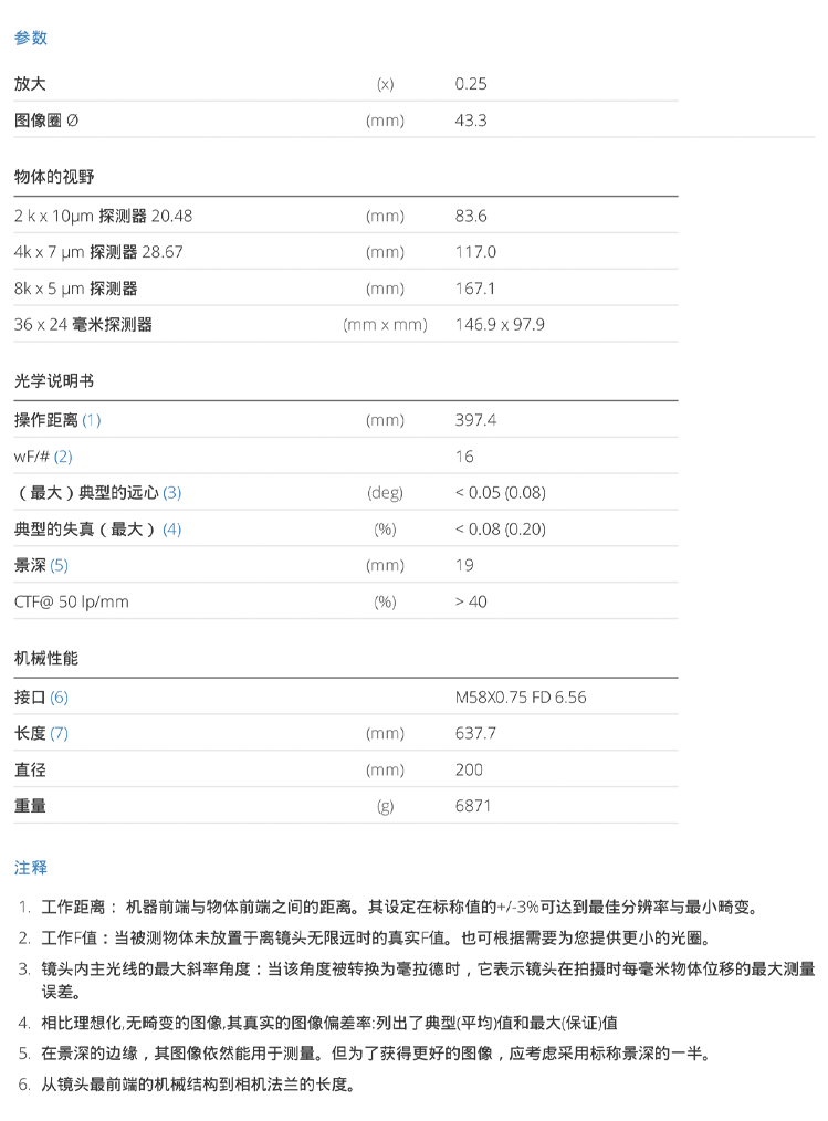 Telecentric lens for 35 mm detectors, magnification 0.245 x, mount M58x0.75 FD = 6.56
