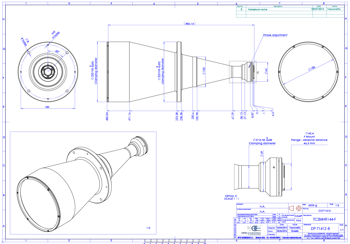 High resolution telecentric lens for 1″ detectors, magnification 0.089x, F-mount