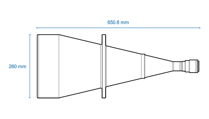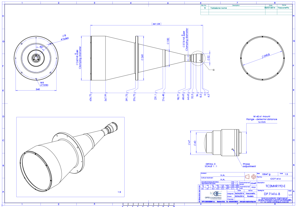 High resolution telecentric lens for 1″ detectors, magnification 0.067x, mount M42X1 FD=16