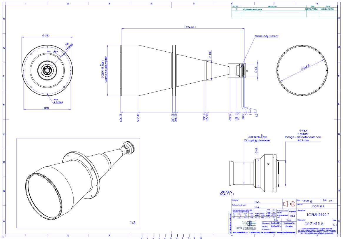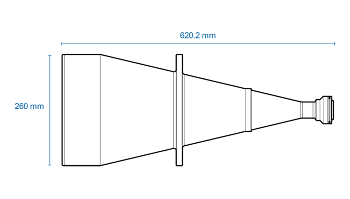 High resolution telecentric lens for 1″ detectors, magnification 0.067x, F-mount