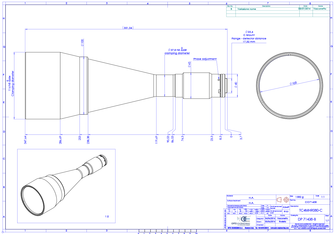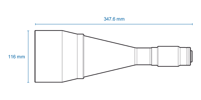 High resolution telecentric lens for 1.2″ detectors, magnification 0.221x, C-mount