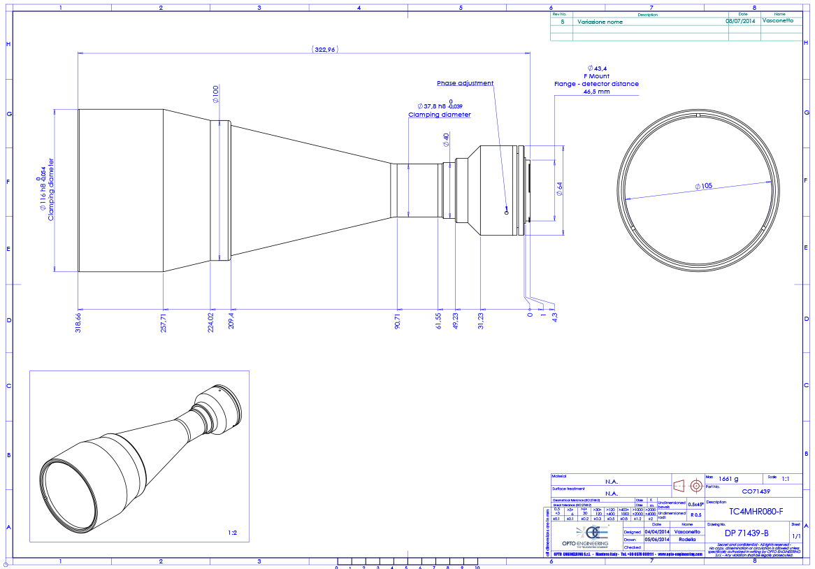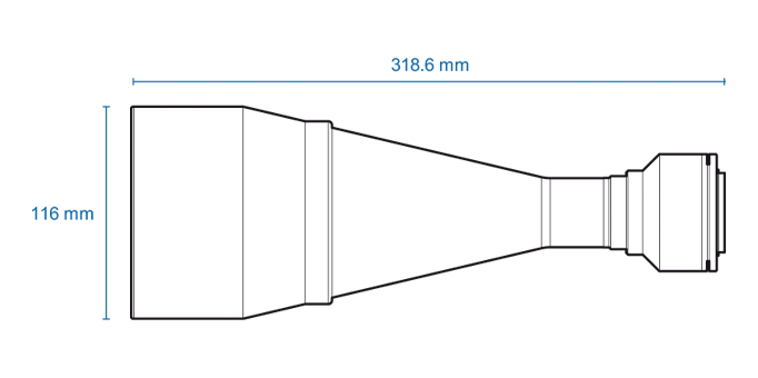 High resolution telecentric lens for 1.2″ detectors, magnification 0.221x, F-mount