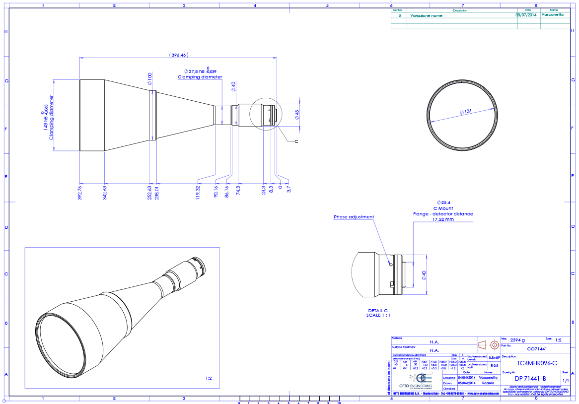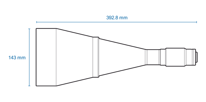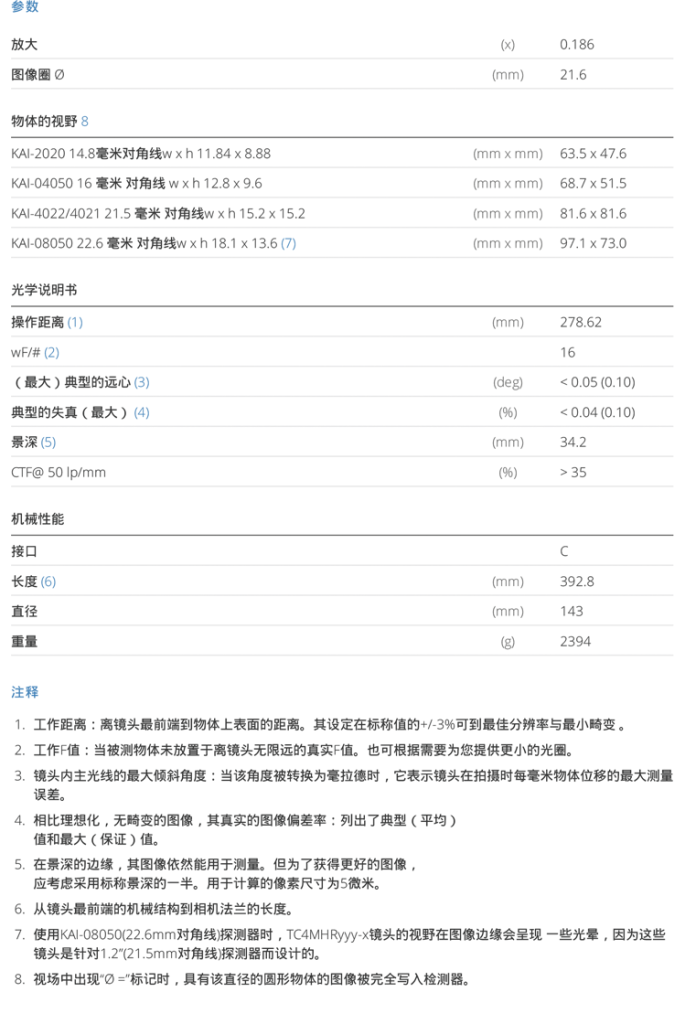 High resolution telecentric lens for 1.2″ detectors, magnification 0.186x, C-mount
