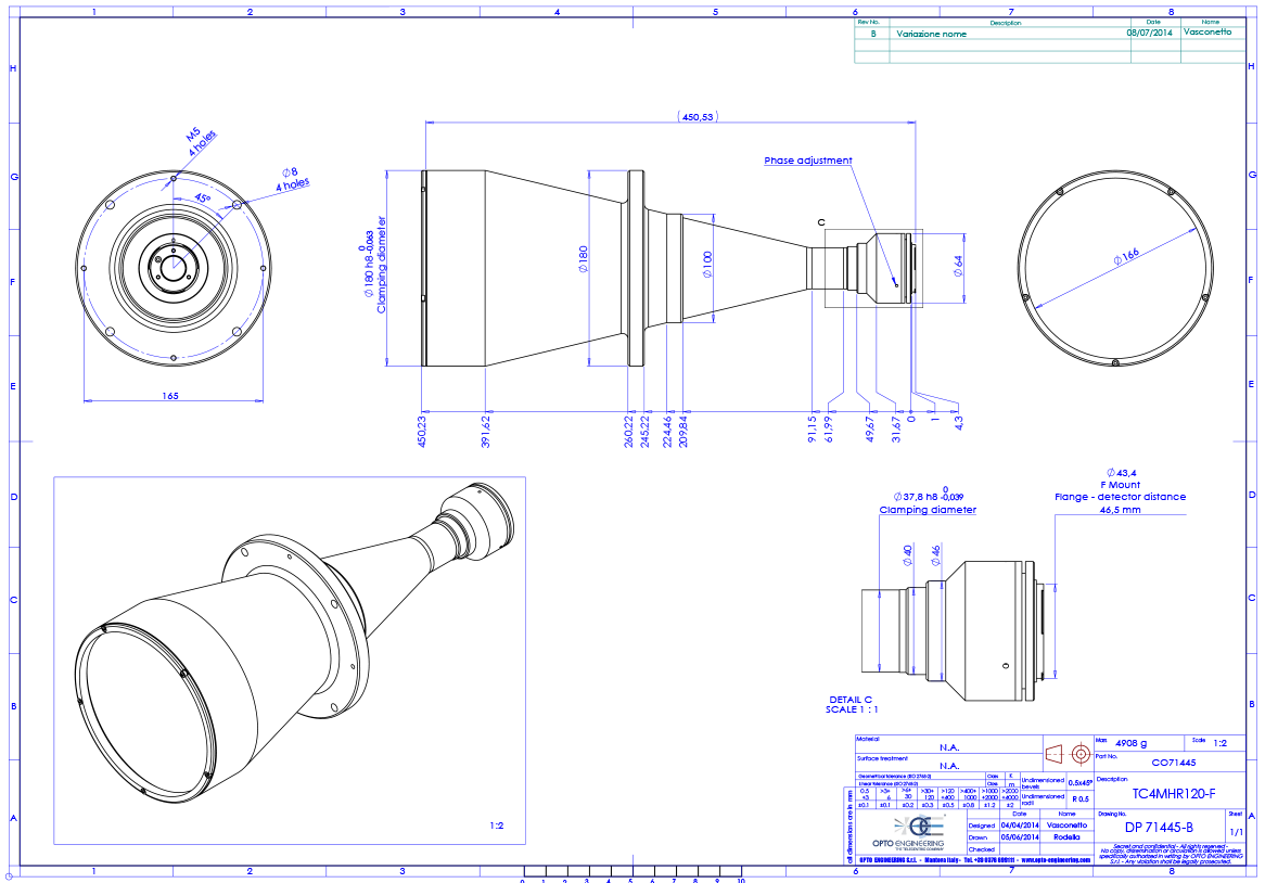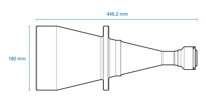 High resolution telecentric lens for 1.2″ detectors, magnification 0.143x, F-mount