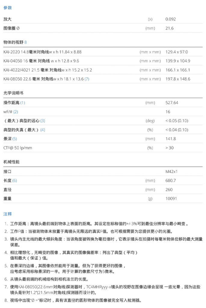 High resolution telecentric lens for 1.2″ detectors, magnification 0.092x, mount M42X1 FD=16