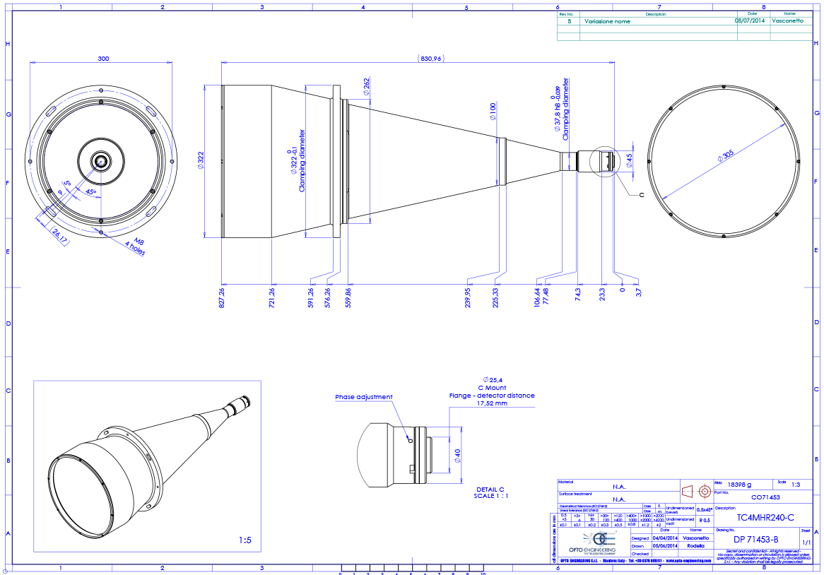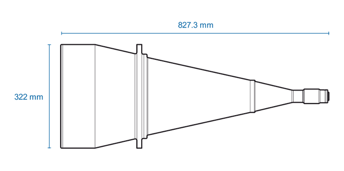 High resolution telecentric lens for 1.2″ detectors, magnification 0.073x, F-mount