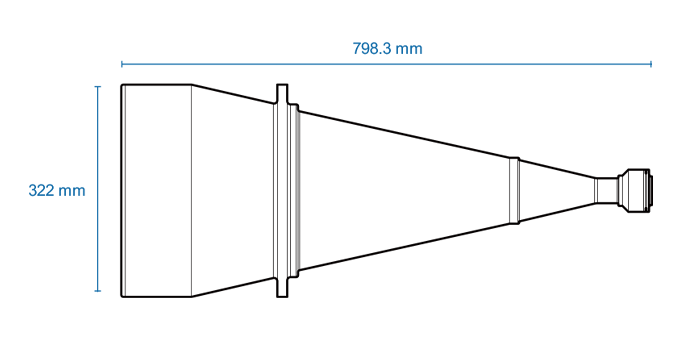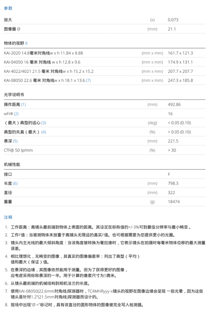High resolution telecentric lens for 1.2″ detectors, magnification 0.073x, F-mount