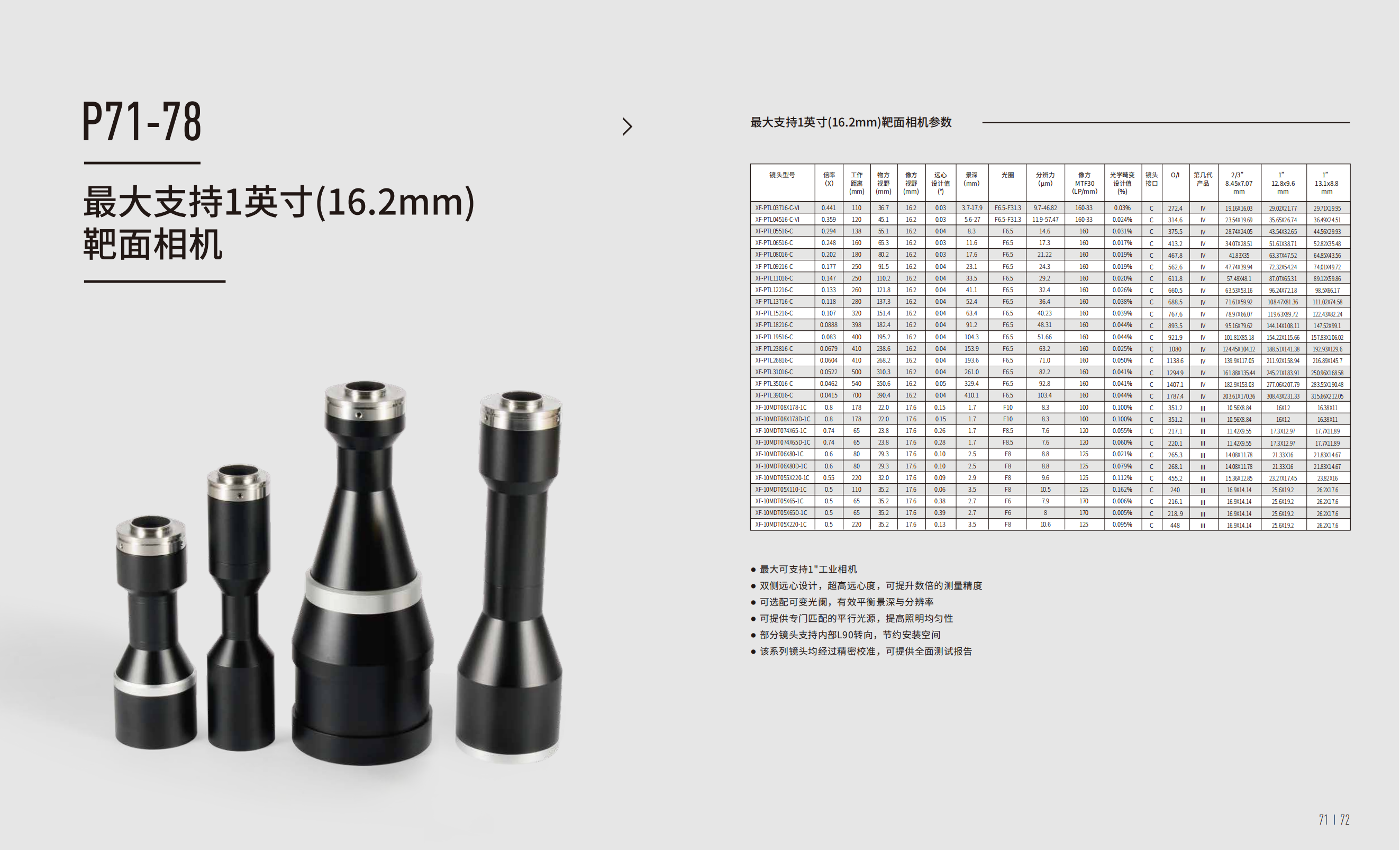 最大支持1英寸(16.2mm)靶面相机