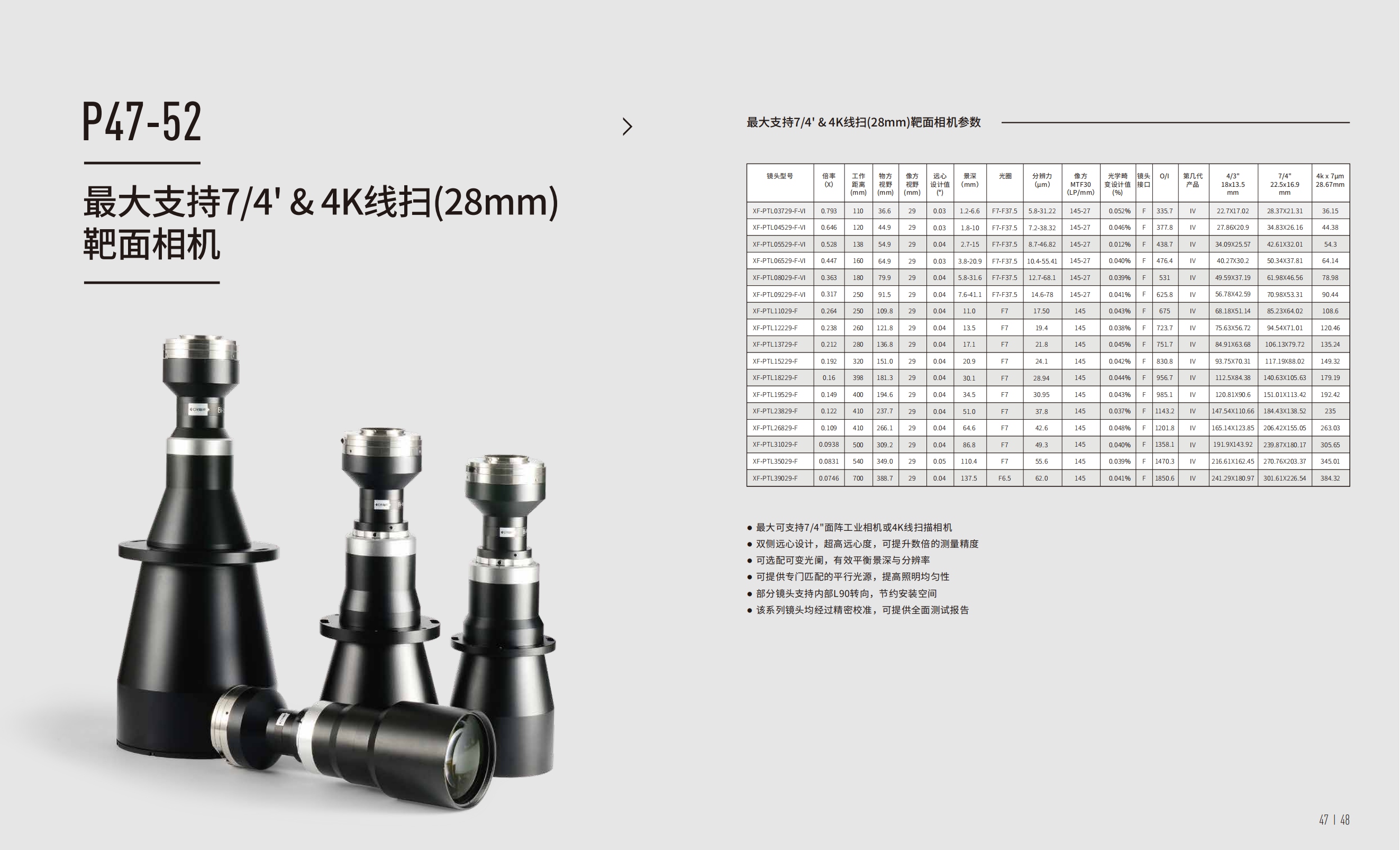 最大支持四分之七英寸&4K线扫(28mm)靶面相机
